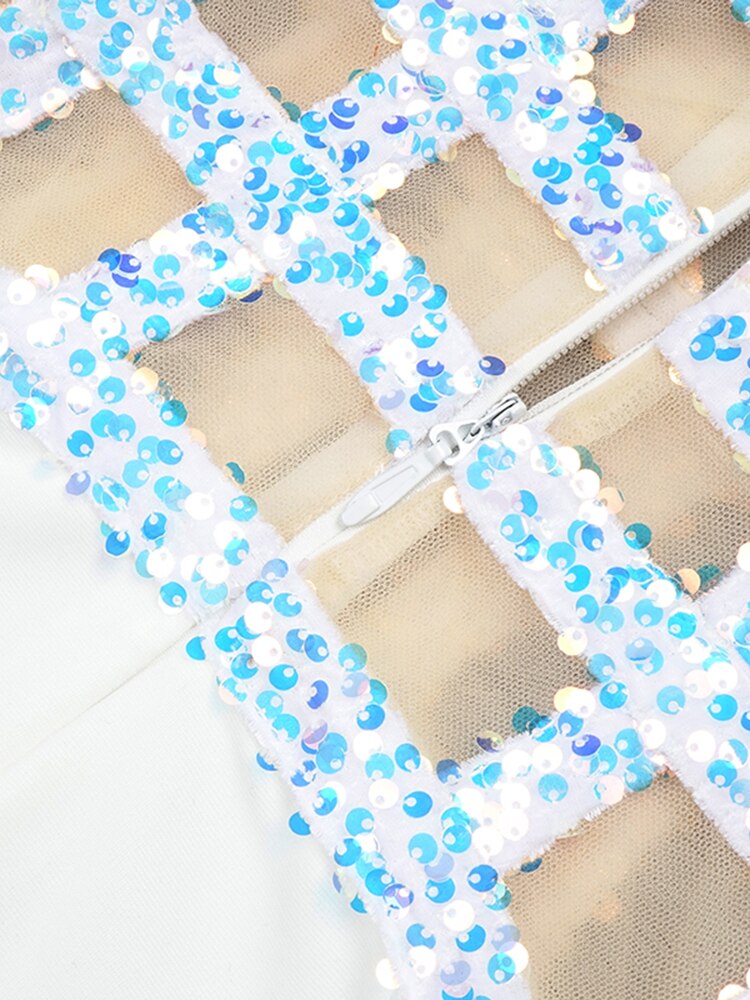 White Sequin Off-Shoulder Evening Gown For Women, Slim Fit, Midtown, BYMANYC New York.